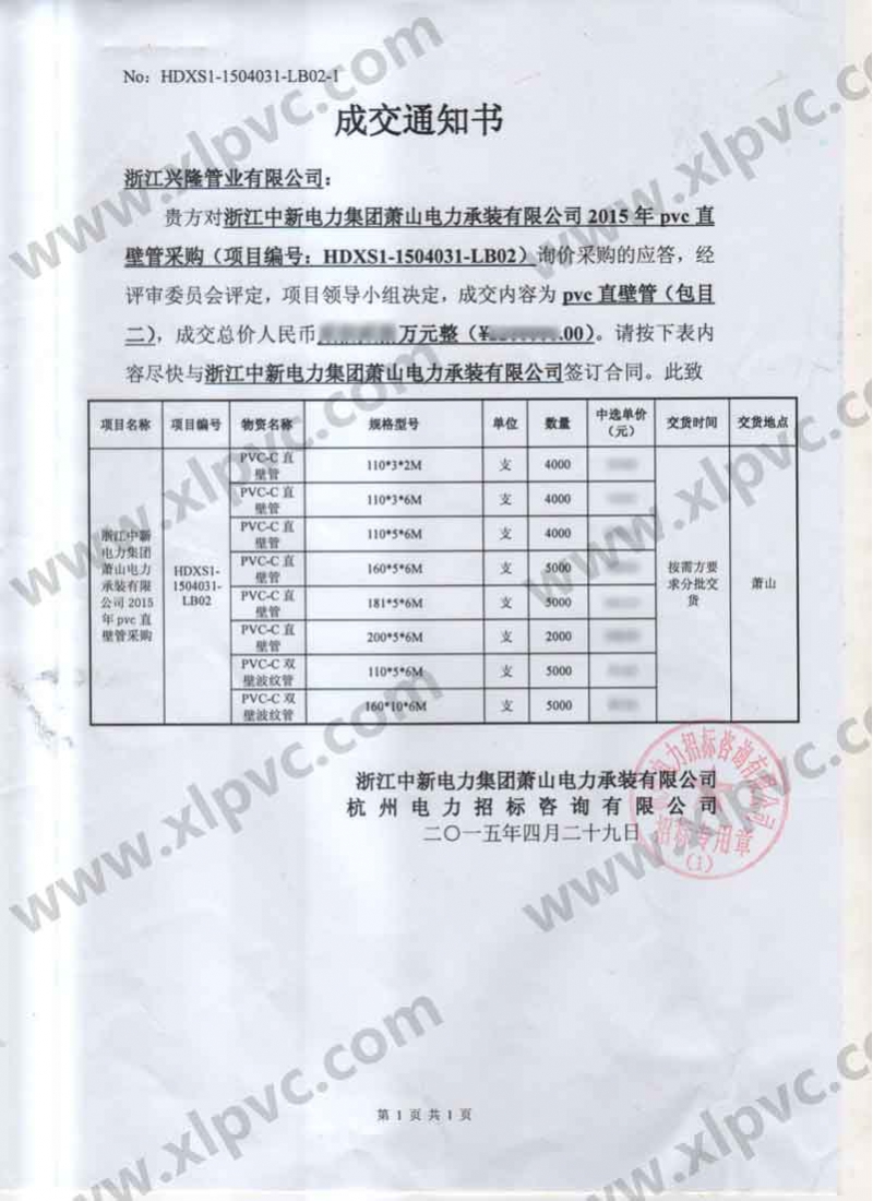 中標(biāo)通知書